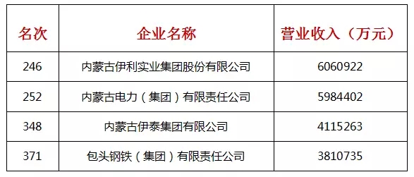 内蒙古4家企业上榜名单: